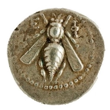 The bee on the obverse of the coinage of Ephesos is found from the beginning of this city’s coinage in the early fifth century BC. The bee was the symbol of Artemis, the goddess of the wild and of wild things, whose temple at Ephesos, the Artemision, was one of the largest and most celebrated in the Greek world. The priestesses of Artemis were known as melittai,‘bees’.