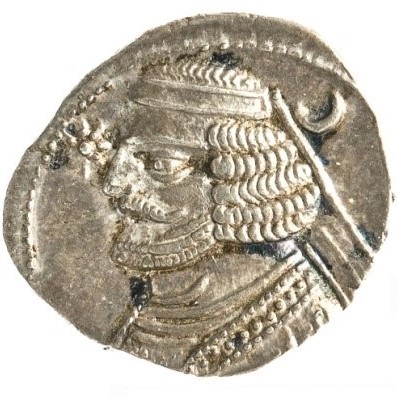 The drachma was one of the chief denominations of Parthian currency. It was of the Attic standard, at least until the end of the reign of Orodes, who ruled Parthia c. 57-38 BC. His portrait can be identified from two coins, one of which bears his name and another a date in his reign (the date according to the Seleukid era, beginning 312 BC). Arsakes (I) on the reverse of the coin) was the founder of the Arsakid dynasty, which ruled Parthia for nearly five centuries (c. 249 BC-AD 224). The bow is the characteristic weapon of the Parthians. This reverse type is the most common on all Parthian coins.